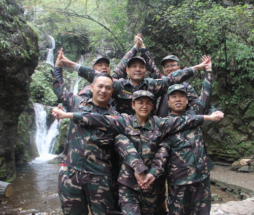 活動過程中,大家在教練的帶領(lǐng)下分成四個小組,經(jīng)過各小組的一番頭腦風(fēng)暴,一首首嘹亮的隊歌、一個個響亮的團隊口號和富有特點的團隊LOGO逐一精彩亮相,“雄鷹隊”“猛虎隊”、“戰(zhàn)狼隊”、“沖天隊”以個性鮮明、充滿力量的團隊形象拉開了體驗式拓展的序幕。