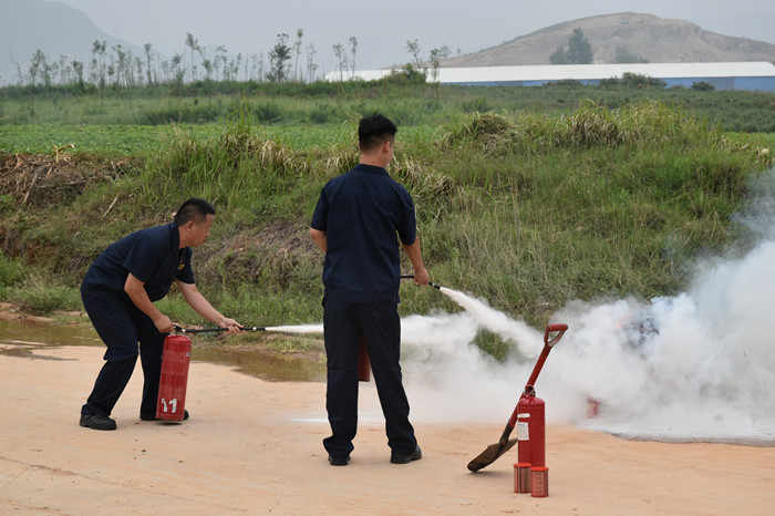 所有人員在禹州分公司民用爆炸物品倉庫區(qū)域外部指定區(qū)域,分七組進行滅火實操。通過實操演練,所有人員均能掌握滅火器“一提二拉三對準四壓”操作要領,從而達到熟練使用滅火器和掌握撲救初期火災的能力,實現(xiàn)理論與實踐的有效結合,達到了實操演練的目的。
