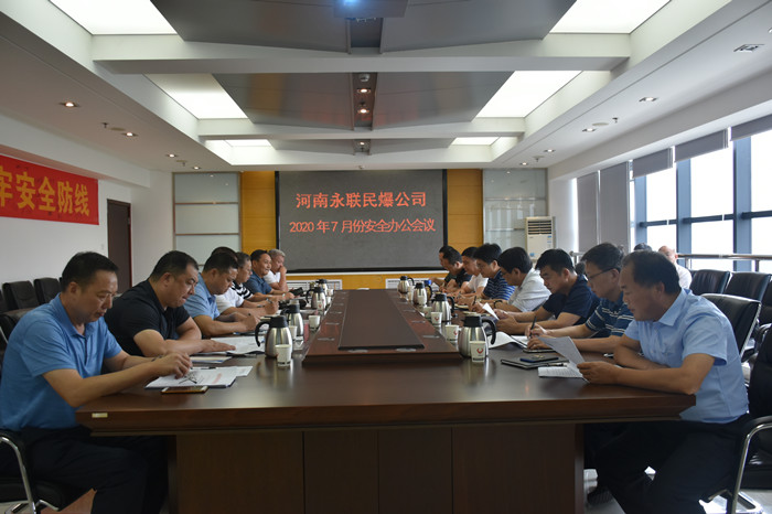 2020年7月30日,河南省永聯(lián)民爆器材股份有限公司召開了7月份安全辦公會(huì)議,公司領(lǐng)導(dǎo)班子、安委會(huì)成員、安委會(huì)辦公室成員以及禹州、駐馬店市、安陽市、靈寶市、舞鋼市、汝陽等6家分公司負(fù)責(zé)人參加了會(huì)議。會(huì)議由公司副總經(jīng)理靳義國主持,公司董事長、總經(jīng)理劉嵩參加會(huì)議并講話。