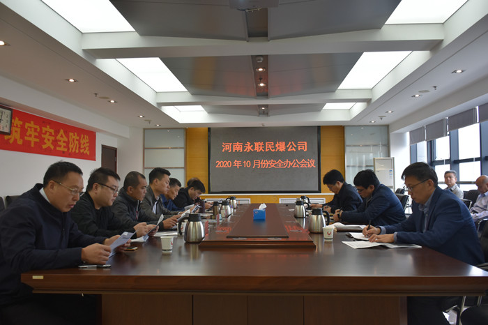 2020年10月30日,河南省永聯(lián)民爆器材股份有限公司召開了10月份安全辦公會議,公司領(lǐng)導(dǎo)班子、安委會成員、安委會辦公室成員以及確山縣、衛(wèi)輝市、永城、鎮(zhèn)平、郟縣、信陽等6家分公司負(fù)責(zé)人參加了會議。會議由公司副總經(jīng)理靳義國主持,公司董事長、總經(jīng)理劉嵩參加會議并講話。