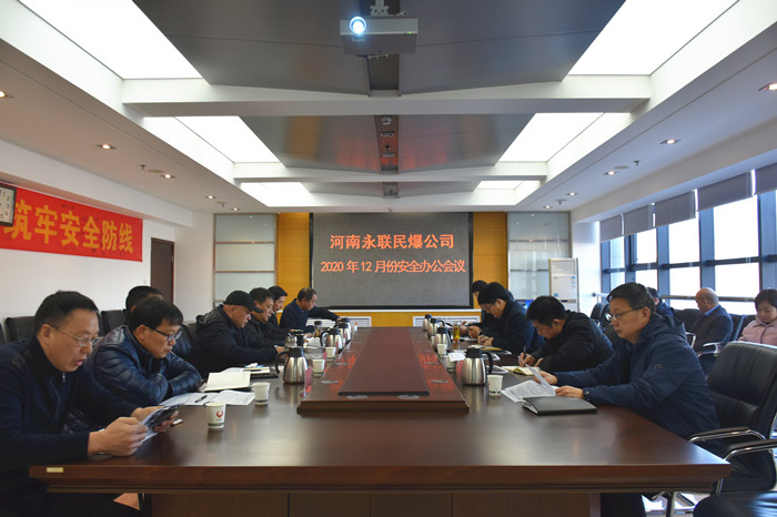 2020年12月31日,河南省永聯(lián)民爆器材股份有限公司召開(kāi)了12月份安全辦公會(huì)議,公司領(lǐng)導(dǎo)班子、安委會(huì)成員、安委會(huì)辦公室成員以及洛寧縣、平頂山力源、南召縣、方城縣、鄧州市、新縣等6家分公司負(fù)責(zé)人參加了會(huì)議。會(huì)議由公司副總經(jīng)理靳義國(guó)主持,公司董事長(zhǎng)、總經(jīng)理劉嵩參加會(huì)議并講話。