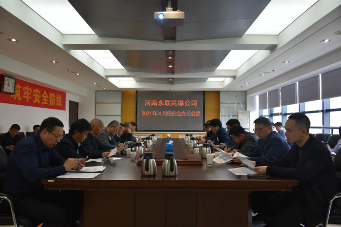 2021年4月29日,河南省永聯(lián)民爆器材股份有限公司召開了4月份安全辦公會(huì)議,公司領(lǐng)導(dǎo)班子、安委會(huì)成員、安委會(huì)辦公室成員以及靈寶市、嵩縣、魯山縣、淇縣、登封市、焦作市等6家分公司負(fù)責(zé)人參加了會(huì)議。會(huì)議由公司副總經(jīng)理靳義國(guó)主持,公司董事長(zhǎng)、總經(jīng)理劉嵩參加會(huì)議并講話。
