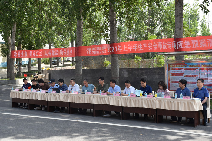 今年6月是全國第20個(gè)“安全生產(chǎn)月”,為進(jìn)一步牢固樹立以人為本、安全發(fā)展的理念,防范化解重大風(fēng)險(xiǎn)、及時(shí)消除安全隱患、有效遏制生產(chǎn)安全事故,2021年6月18日,河南省永聯(lián)民爆器材股份有限公司與永聯(lián)衛(wèi)輝市分公司聯(lián)合開展以“落實(shí)安全責(zé)任,推動(dòng)安全發(fā)展”為主題的專項(xiàng)應(yīng)急演練。公司特邀省委軍民融合辦二級(jí)巡視員張衛(wèi)東,民爆局局長王玉生以及新鄉(xiāng)市工信局、衛(wèi)輝市工信局等單位領(lǐng)導(dǎo)蒞臨現(xiàn)場觀摩指導(dǎo)。