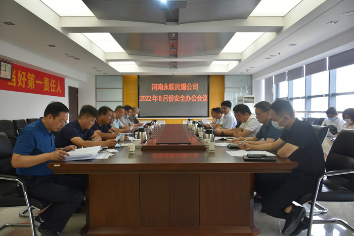 2022年8月26日,河南省永聯(lián)民爆器材股份有限公司召開了8月份安全辦公會議,公司領(lǐng)導(dǎo)班子、安委會成員、安委會辦公室成員以及淇縣、光山縣、焦作市、安陽市、內(nèi)鄉(xiāng)縣、郟縣等6家分公司負責(zé)人參加了會議。會議由公司副總經(jīng)理靳義國主持,公司董事長、總經(jīng)理劉嵩參加會議并講話。