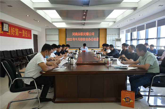 2022年9月30日,河南省永聯(lián)民爆器材股份有限公司召開了9月份安全辦公會議,公司領(lǐng)導(dǎo)班子、安委會成員、安委會辦公室成員參加了會議。會議由公司副總經(jīng)理靳義國主持,公司董事長、總經(jīng)理劉嵩參加會議并講話。