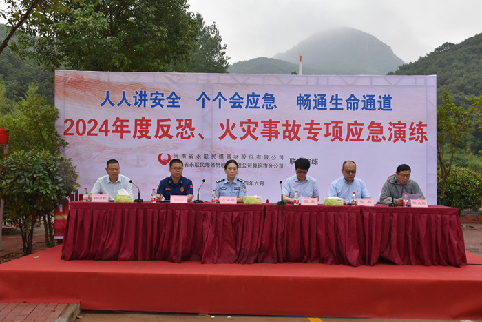 今年6月是全國第23個“安全生產(chǎn)月”,為進一步牢固樹立以人為本、安全發(fā)展的理念,防范化解重大風險、及時消除安全隱患、有效遏制生產(chǎn)安全事故,2024年6月21日,河南省永聯(lián)民爆器材股份有限公司與舞鋼市分公司聯(lián)合開展以“人人講安全、個個會應急——暢通生命通道”為主題的聯(lián)合專項應急演練。