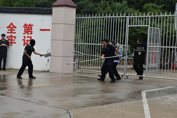在預設情境下,庫區(qū)崗哨發(fā)現(xiàn)可疑人員試圖闖入,值守人員勸阻無效后,恐怖分子持兇器砸門。值守人員迅速穿戴防護裝備,與恐怖分子對峙并上報情況。演練副總指揮迅速啟動反恐專項應急預案并報警,各小組支援,對恐怖分子形成夾擊之勢,規(guī)勸無果后展開搏斗。最終,恐怖分子被制服,醫(yī)療組到場救治傷者。整個演練過程中,所有參演人員能夠按照真實場景進行處置,事件發(fā)生、報警、響應、支援、警戒、圍捕,過程連貫有序,人員嚴肅認真,程序銜接到位,達到預期效果。